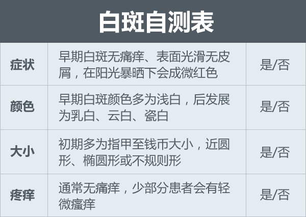 据赣医临床数据统计:身上长白斑90%都是白癜风,可以根据以下症状简单自测。