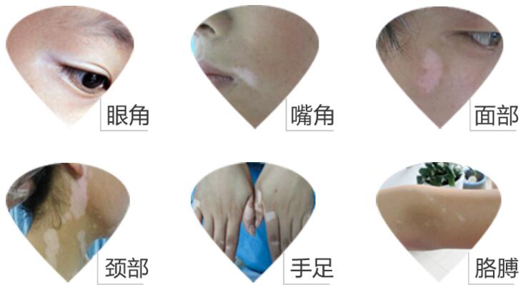 3,白斑大小不一,多长在暴露部位(脸、手、脚等)