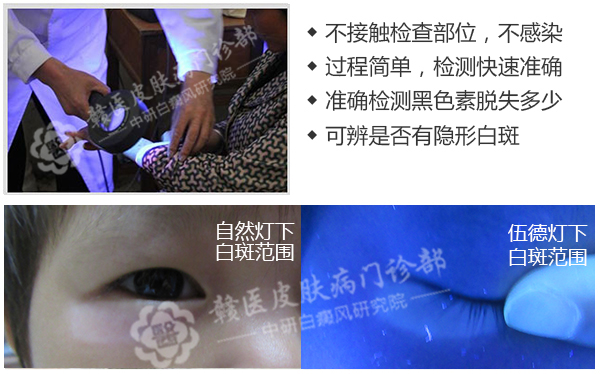 赣州中研引进的德国伍德灯通过直接照射白斑部位,根据皮肤反射光的不同颜色,辨别白斑是不是白癜风。