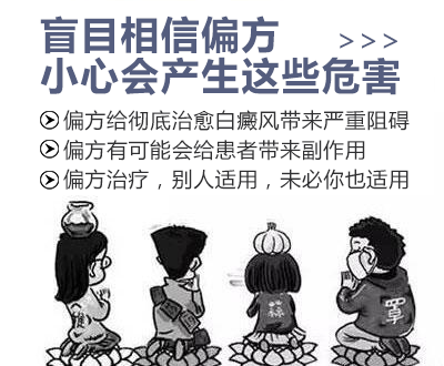 想要快速的治好白癜风,还是得选科学规范的治疗方式,偏方起不到什么效果的,用不好还有可能造成其他疾病。