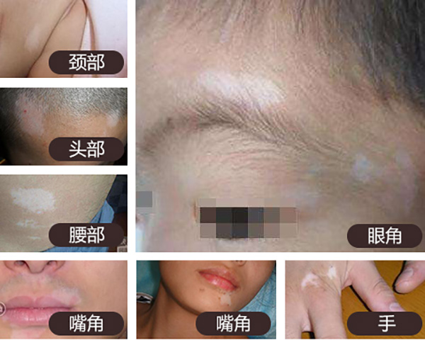 白癜风发病时期不同,皮肤脱色的颜色、面积也都相应不同,下面是不同时期白癜风症状图: