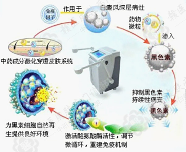 (3)提高白斑部位对光的敏感度,增加光疗的效果。从而达到缩短病程的功效。