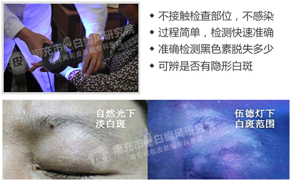 主要是通过德国Wood灯准确检测患者白斑损害具体位置、损害程度及色素脱失程度,可根据患病情况制定更加科学的治疗方案。