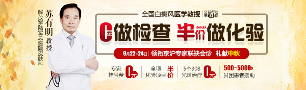 随着入秋天气变凉,白癜风病情也趋于稳定,因为长袖挡住了白斑,很多患者在入秋之后就中断了治疗。但秋季光照强度低、清爽干燥的空气降低了对皮肤的刺激和伤害,在秋季病情相对稳定的情况下治疗,能达到事半功倍的效果。所以,对于白癜风患者来说,在秋季不仅不能中断治疗,还要利用这个祛白黄金季,更快摆脱白癜风顽疾。为此,我院节假日不休,9月22-24日中秋期间,特邀解放军陆军总医院皮肤科主任苏有明教授来我院公益亲诊,0元做检查,半价做化验。